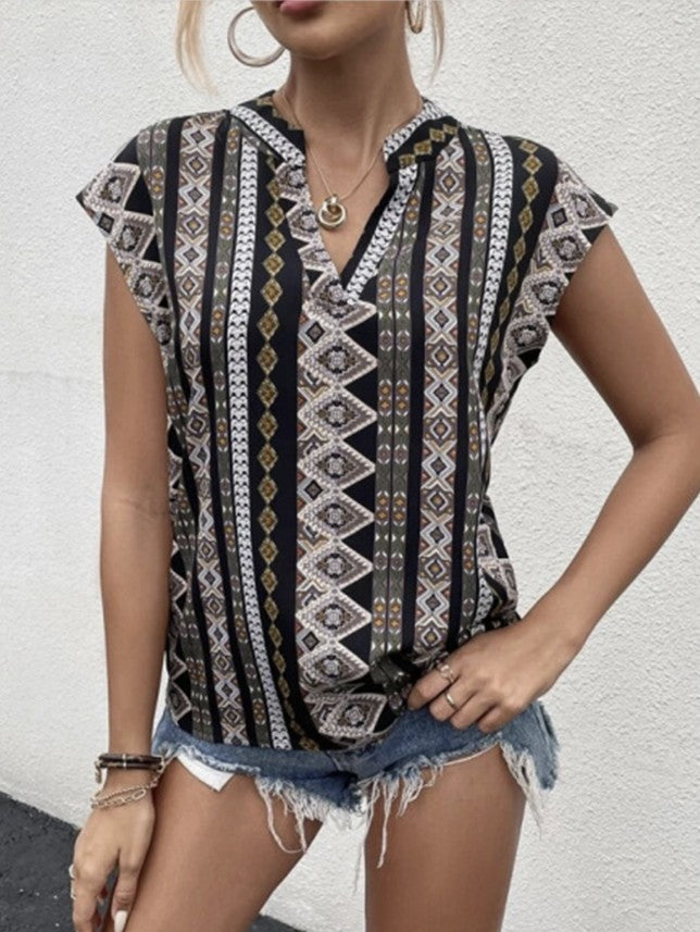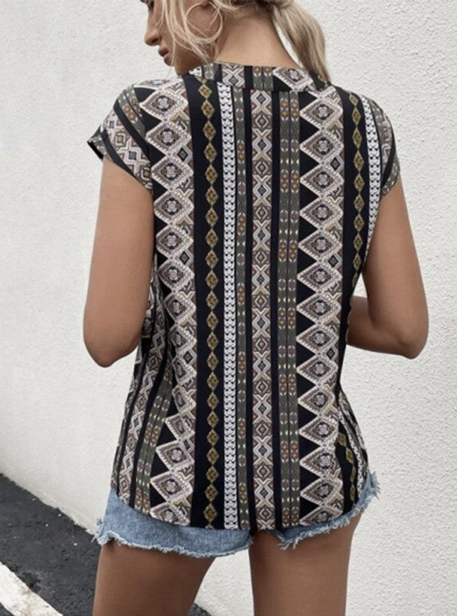 Aztec Print V-Neck Button Up Top - #9576-9580