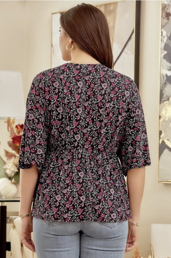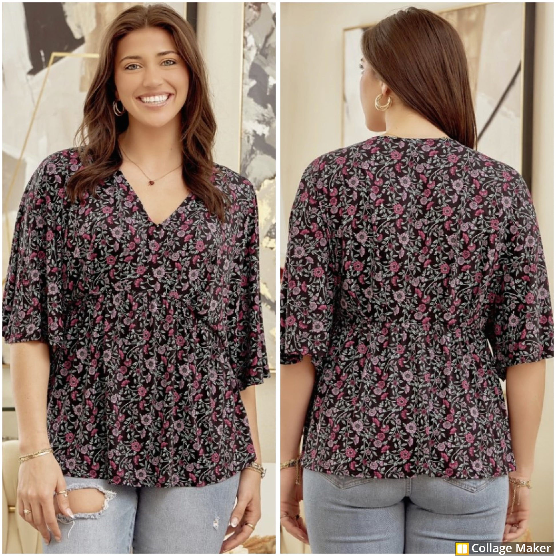 This cute top will make your dreams come true! This top features dolman sleeves with v neckline and pleating details throughout the waist seam. We love the flattering fit on this top that also features wrinkle free, travel friendly, soft material.
