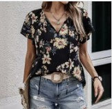 Black Floral V-Neck Top w/Front Tie - #9787-9790