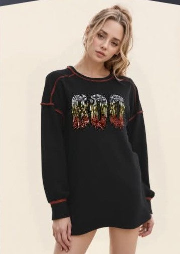 Black Long Sleeve Top w/Sequin Boo - #10138-10143