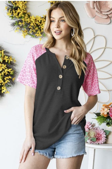 Black Top with Pink Animal Print Sleeves - #9865-9870