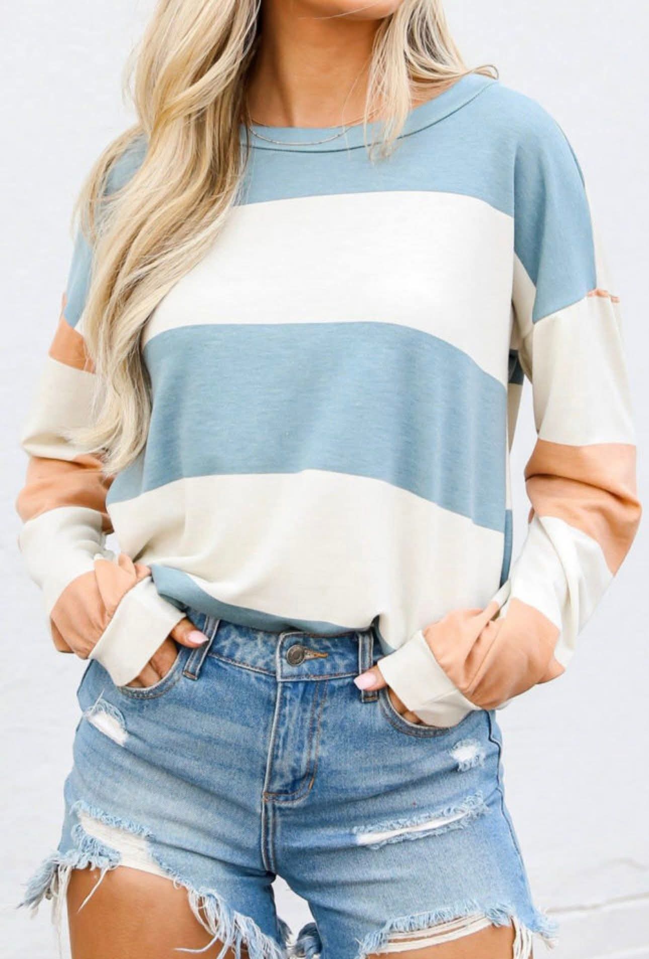 Blue/White/Peach Long Sleeve Top