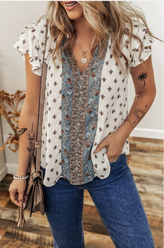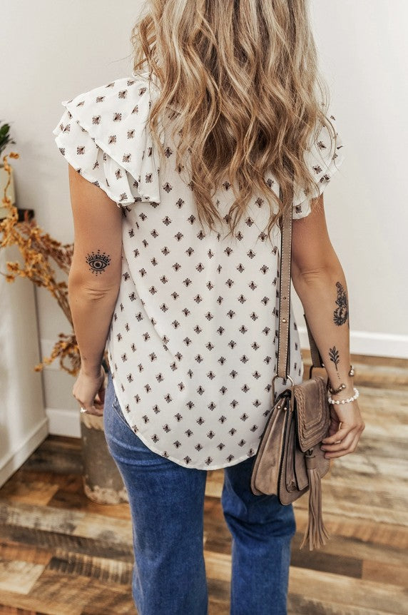 š The tiered ruffled sleeves add a feminine flourish, giving this blouse a romantic and graceful silhouette that's perfect for any occasion.