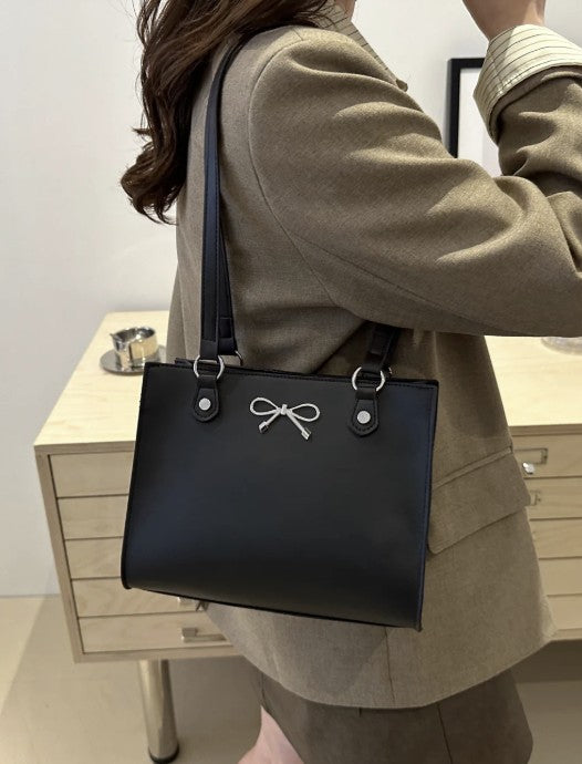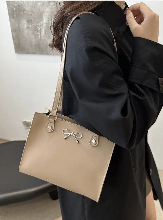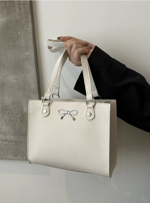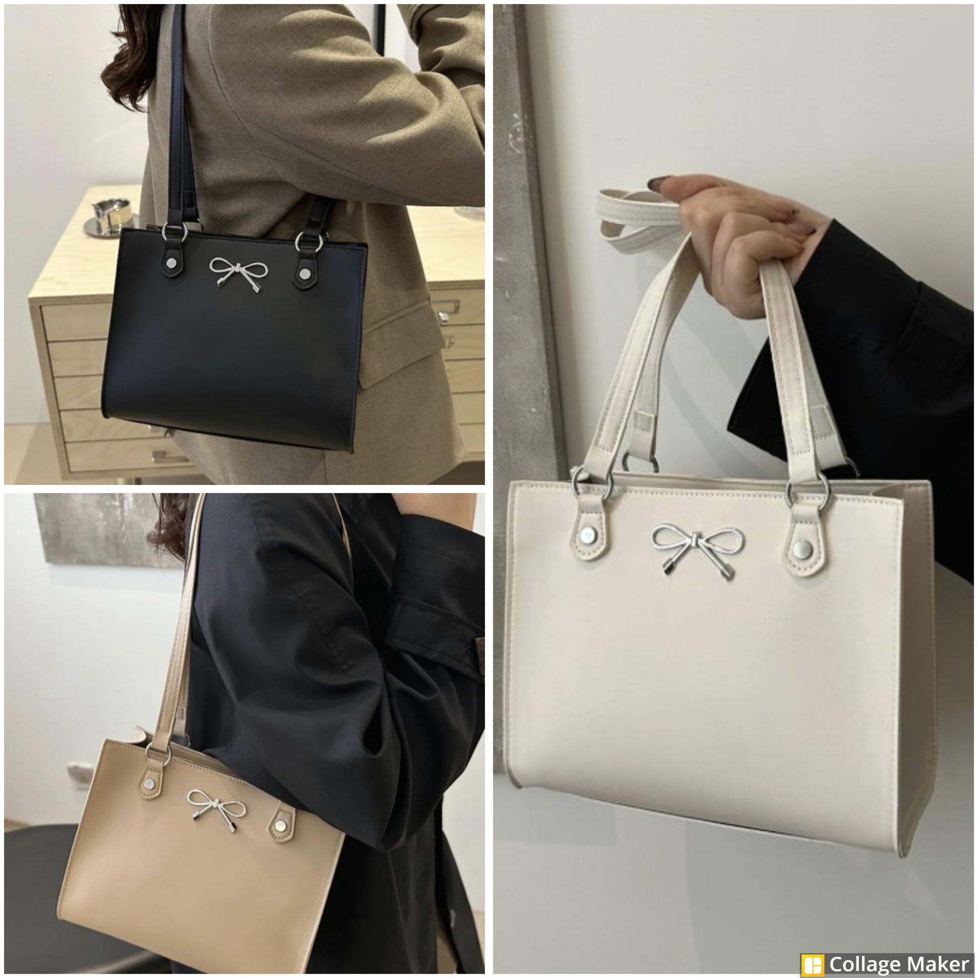 Bow Trim Tote Bag (Black-White-Khaki) - #9296-9298