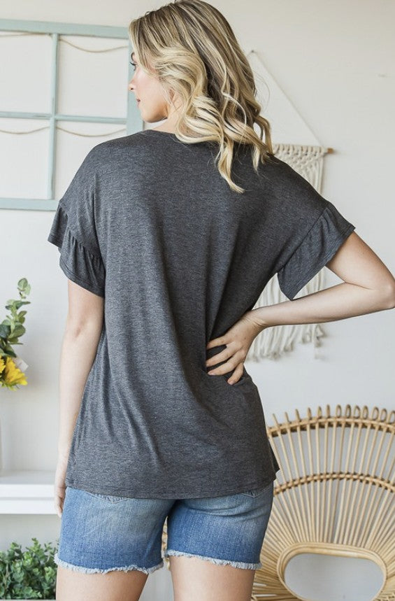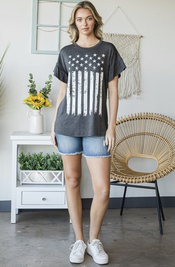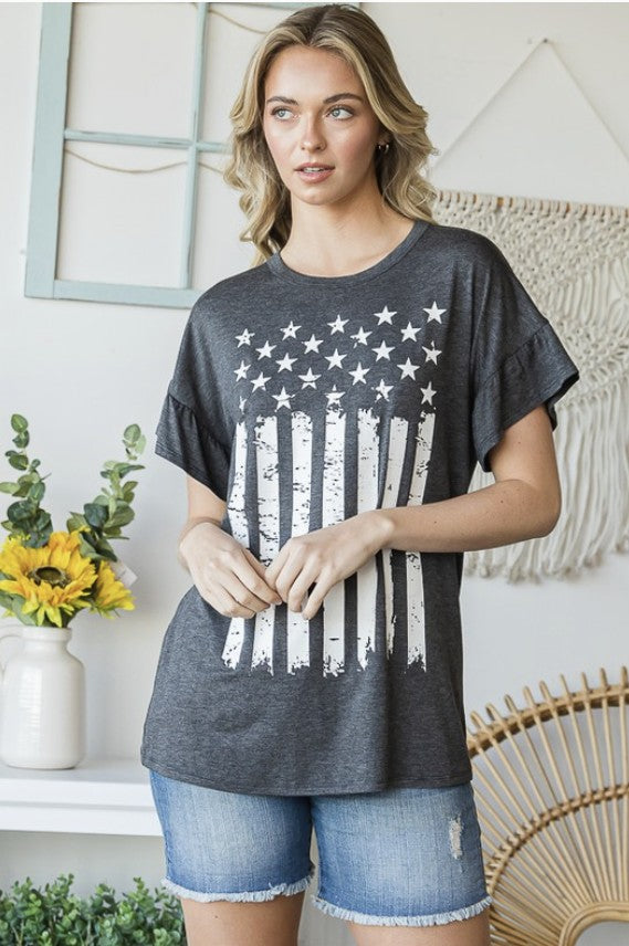 Grey Stars N Stripes Top w/Ruffle Sleeve