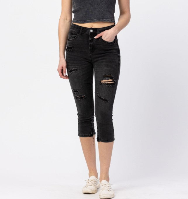 Judy Blue #82270- Black Distressed Capris - #5118-5130