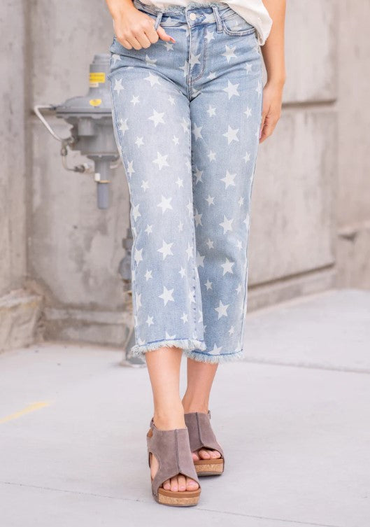 Star Print Cropped Jeans
