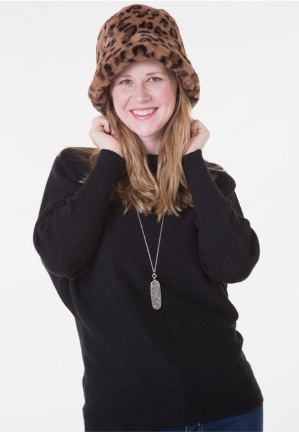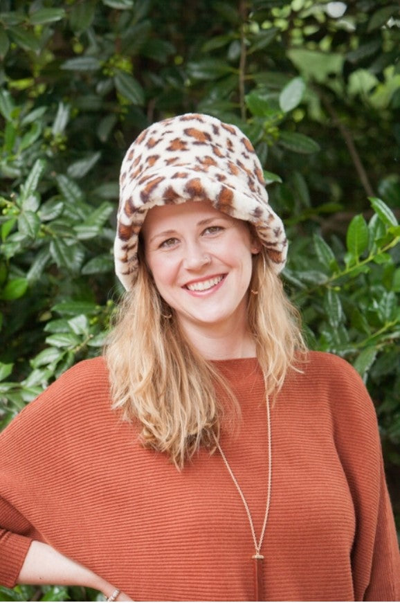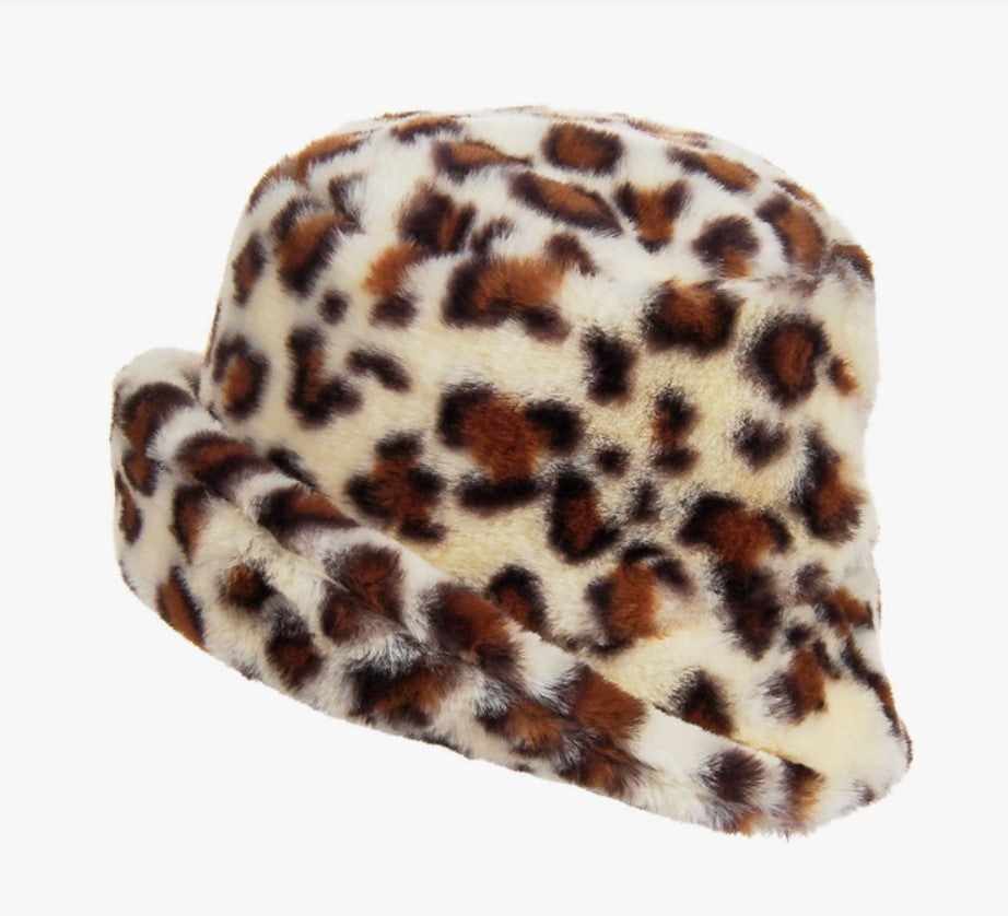 Leopard Print Fur Bucket Hat