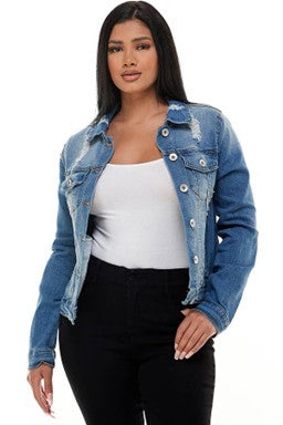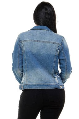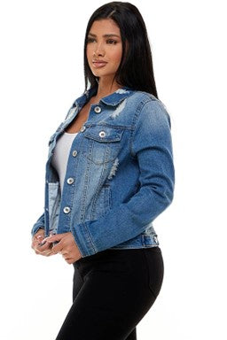 Medium Wash Destroyed Stretch Denim Jacket - #4580-4585