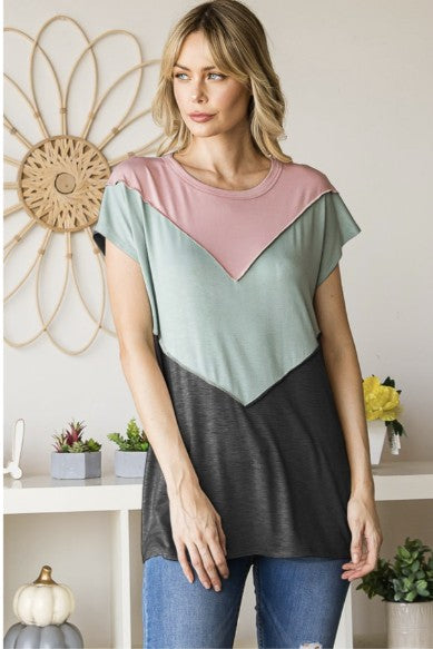 Pink-Sage-Grey Tricolor Top