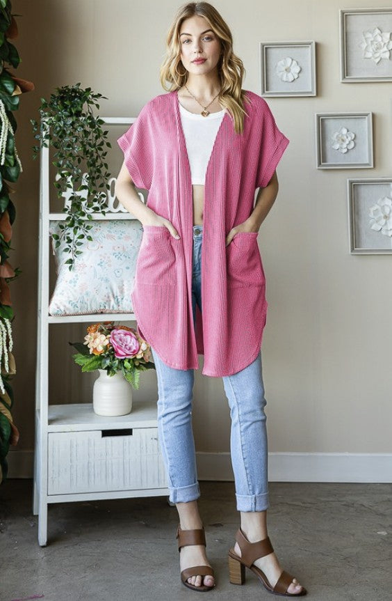 Pink Short Sleeve Ribbed Cardigan - #8959-8964