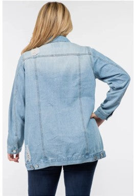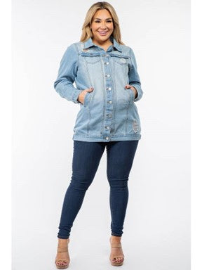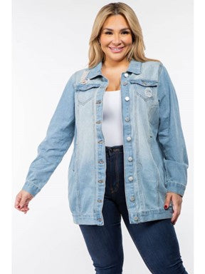 Plus Long Denim Jacket-Light Med Wash - #4683-4685