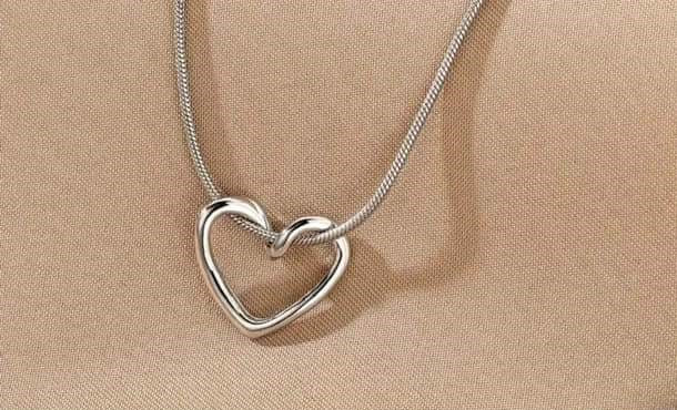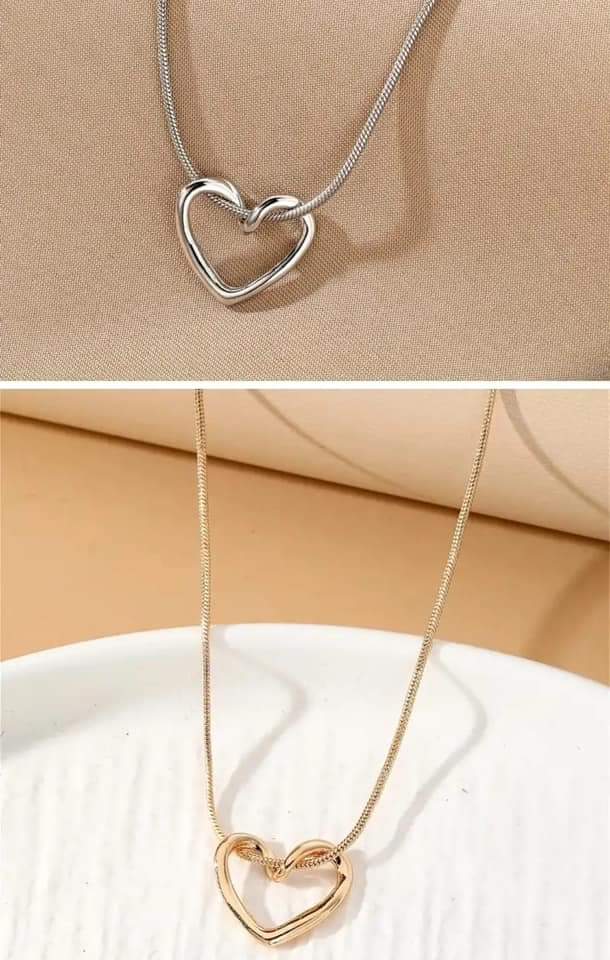 Silver & Gold Heart Pendant Necklace - #8373-8374