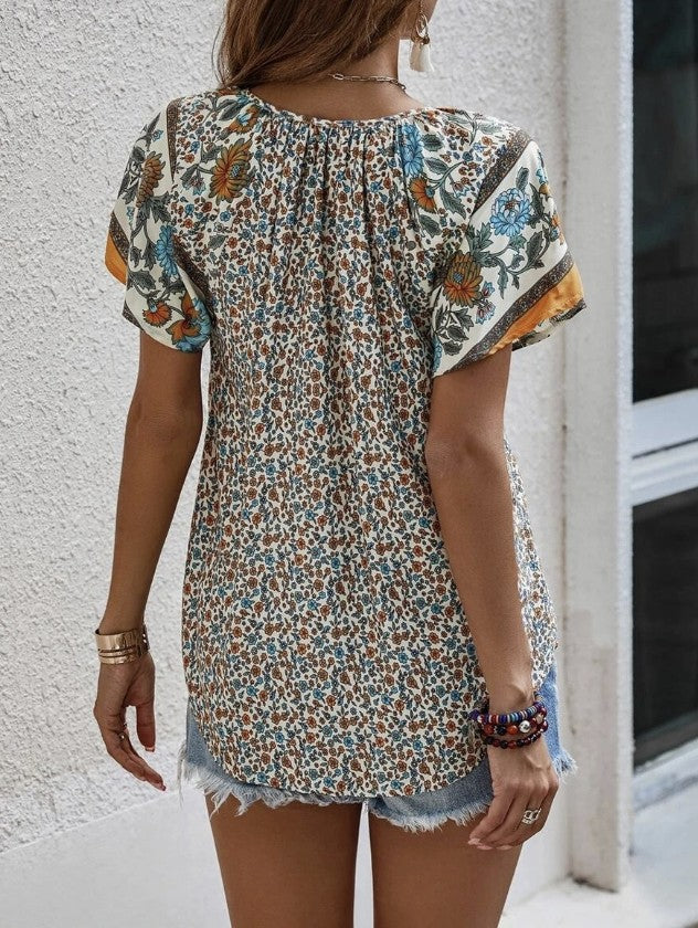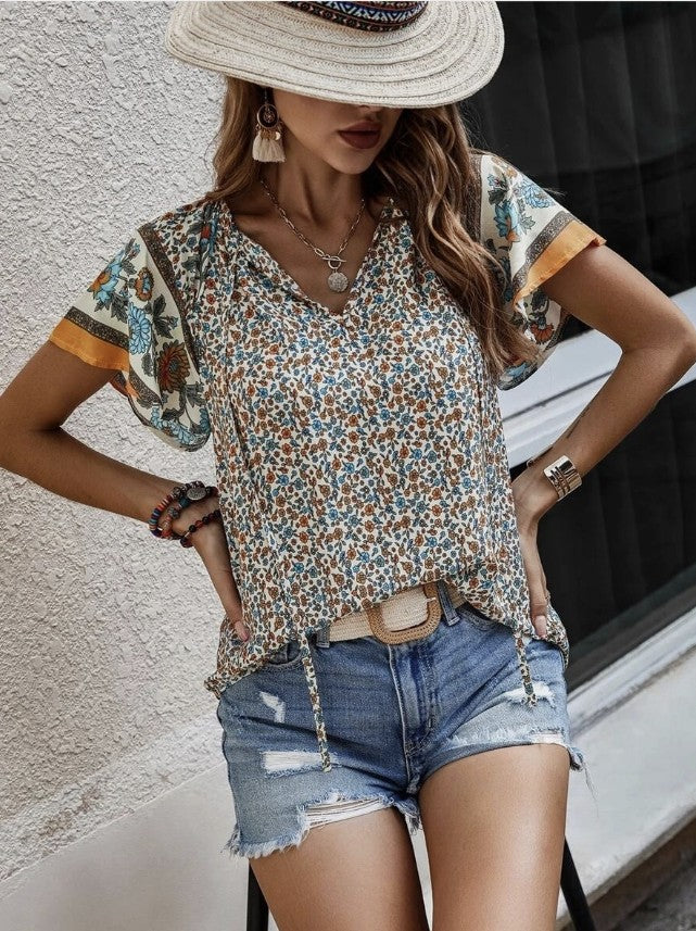 Western Floral V-Neck Top