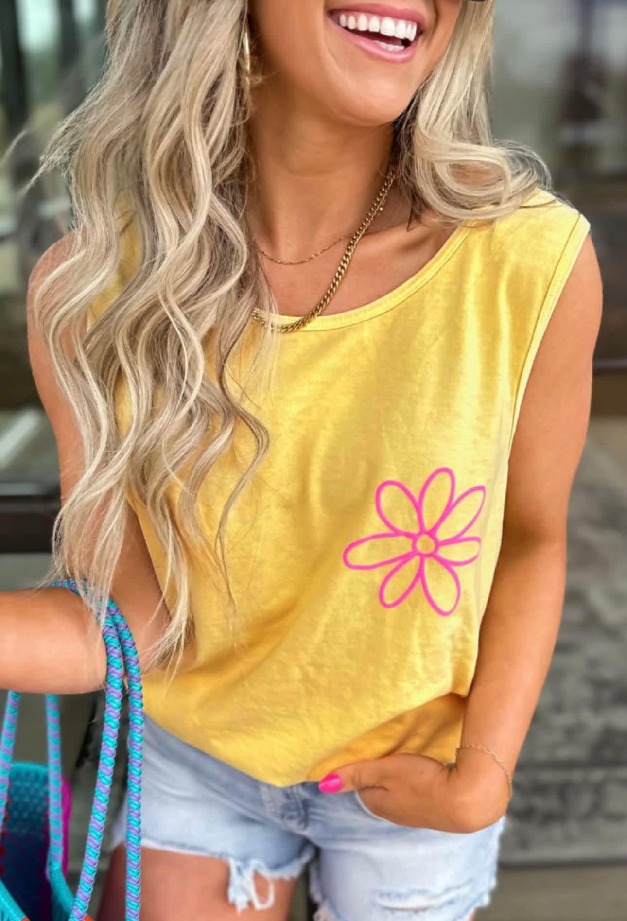 Yellow Summer Tank w/Pink Flower #9831-9834